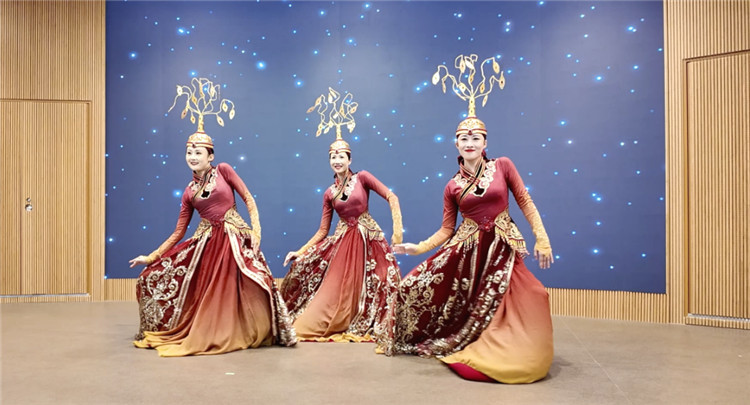 三人舞《金步舞冠》。中國(guó)駐大阪旅游辦事處供圖