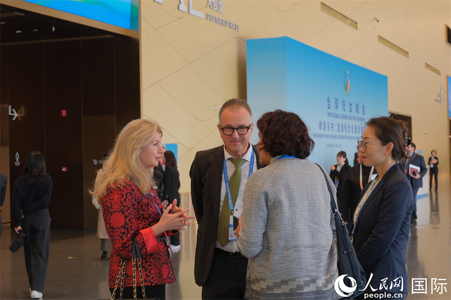 嘉賓在全球婦女峰會(huì)現(xiàn)場(chǎng)交流。人民網(wǎng)記者 宋美琪攝 |