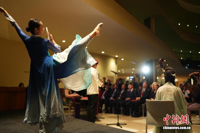 當(dāng)?shù)貢r(shí)間10月13日,2025“天涯共此時(shí)—中秋詩(shī)會(huì)”在紐約聯(lián)合國(guó)總部舉辦。圖為舞蹈《月影流光》。中新網(wǎng)記者 廖攀 攝