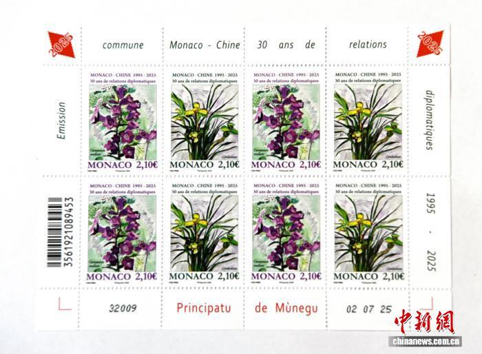 摩納哥發(fā)行的《中摩建交三十周年》紀(jì)念郵票全套兩枚,圖案與中國郵政發(fā)行的同題材郵票圖案相同,分別為風(fēng)鈴草(代表摩納哥)、春蘭(代表中國),由中國畫家閆平設(shè)計(jì),寓意兩國30年友好交往的溫馨與生機(jī)。摩納哥郵政此前已經(jīng)對外公布了這套郵票的圖稿。