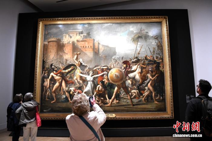 當?shù)貢r間10月15日,法國盧浮宮“雅克-路易·大衛(wèi)”特展拉開帷幕,旨在紀念法國著名畫家雅克-路易·大衛(wèi)逝世200周年。圖為觀眾在欣賞他創(chuàng)作的名畫《薩賓婦女》?!≈行律缬浾?李洋 攝