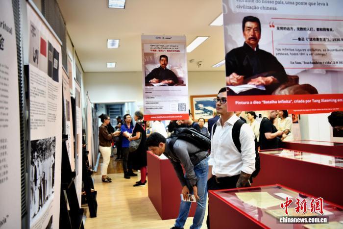 當(dāng)?shù)貢r(shí)間10月17日晚,由北京魯迅博物館、北京新文化運(yùn)動(dòng)紀(jì)念館和巴西圣保羅州立大學(xué)孔子學(xué)院聯(lián)袂主辦的“魯迅的文藝道路——不隔膜,相關(guān)心”展在巴西圣保羅州立大學(xué)孔子學(xué)院?jiǎn)⒛唬鬓k方代表為展覽剪彩。中新社記者 林春茵 攝