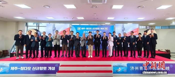 中新網(wǎng)首爾10月19日電 (記者 劉旭)18日,“濟(jì)州—青島新航線(xiàn)開(kāi)通”慶祝活動(dòng)在韓國(guó)濟(jì)州舉行。
