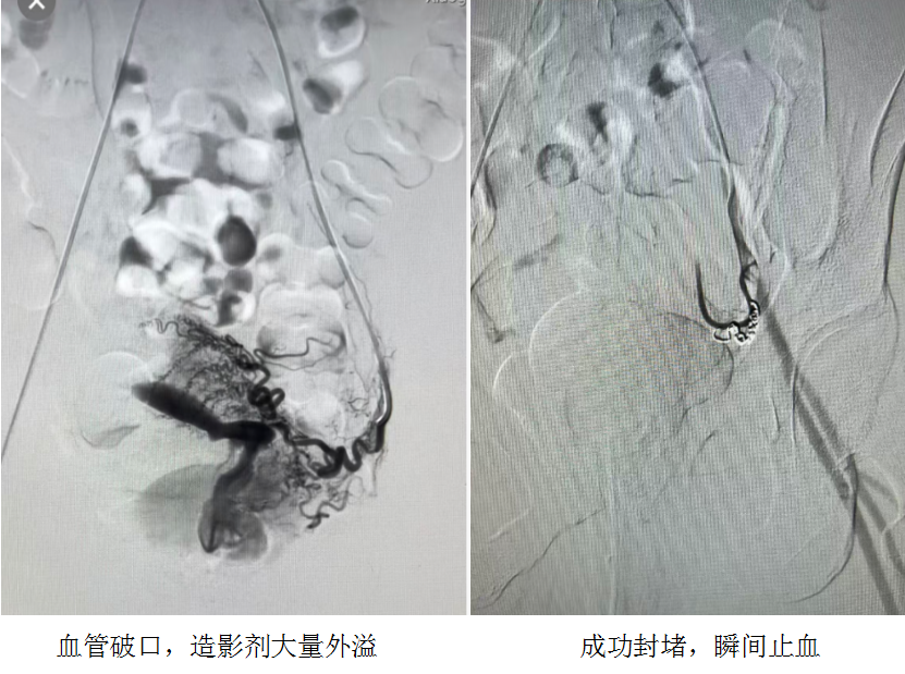 在介入手術(shù)室,黃遷祥團(tuán)隊(duì)?wèi){借精湛的技術(shù),順利將導(dǎo)管超選擇性插入目標(biāo)血管。造影劑注入后,屏幕上清晰顯示子宮區(qū)域一團(tuán)紊亂、迂曲的異常血管團(tuán),隨后,黃遷祥通過導(dǎo)管將數(shù)百枚微小的栓塞顆粒及5枚彈簧圈精準(zhǔn)注入。頃刻間,造影顯示異常血管團(tuán)的顯影完全消失,血流被成功阻斷,而正常子宮血管則完好無損,手術(shù)歷時(shí)僅約一小時(shí)。術(shù)后,李女士僅留下一個(gè)約2毫米的穿刺點(diǎn),無需縫合,幾乎無疤痕。