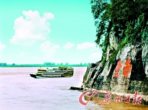 在赤壁縣城西邊的赤壁古戰(zhàn)場,如今依然江水滔滔。當年“赤壁之戰(zhàn)”,經(jīng)此一役,定下三分天下格局。李白詩曰:“二龍爭戰(zhàn)決雌雄,赤壁樓船掃地空。烈火張?zhí)煺赵坪,周瑜于此破曹公!毕﹃栁飨,紅色的陽光灑在江面上,怎不讓人想起那烽火連天的三國?