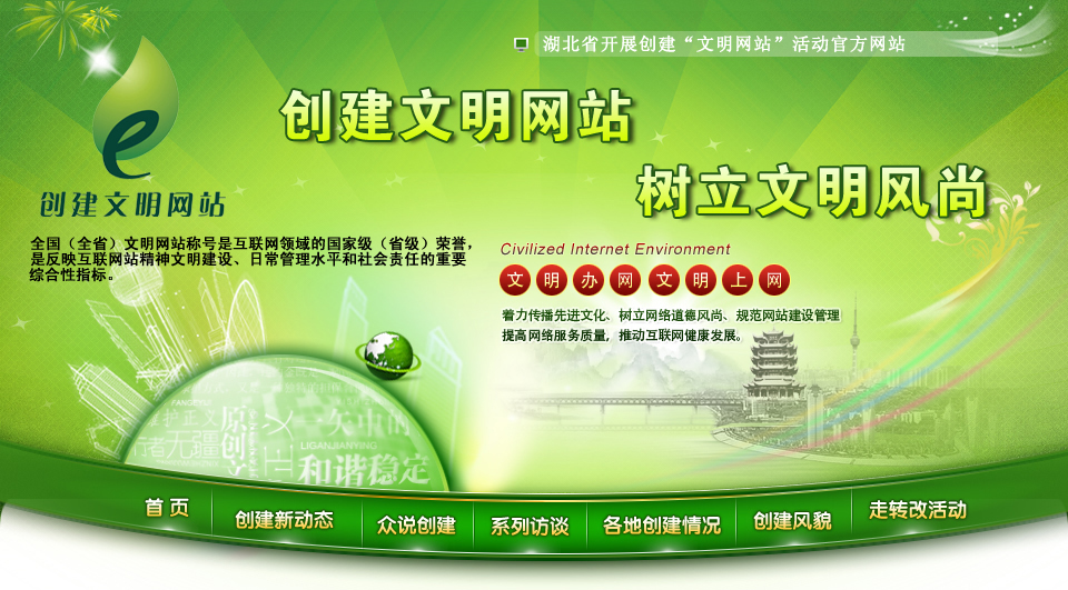 首屆湖北省文明網站評選擬授予13家網站“首屆湖北省文明網站”稱號,授予10個頻道“首屆湖北省互聯(lián)網文明頻道”稱號,授予20家網站“首屆湖北省‘文明網站’創(chuàng)建活動先進單位”稱號。